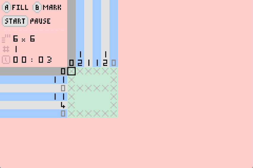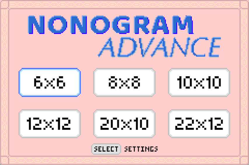 Nonogram game with 108 puzzles for the GBA.